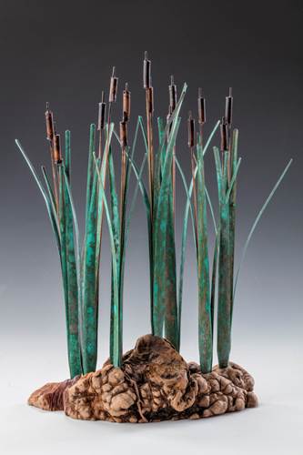 Copper Cattails on Manzanita Wood - Please Note: You will not receive the one pictured as each piece of wood is unique! Dimensions are approximate.